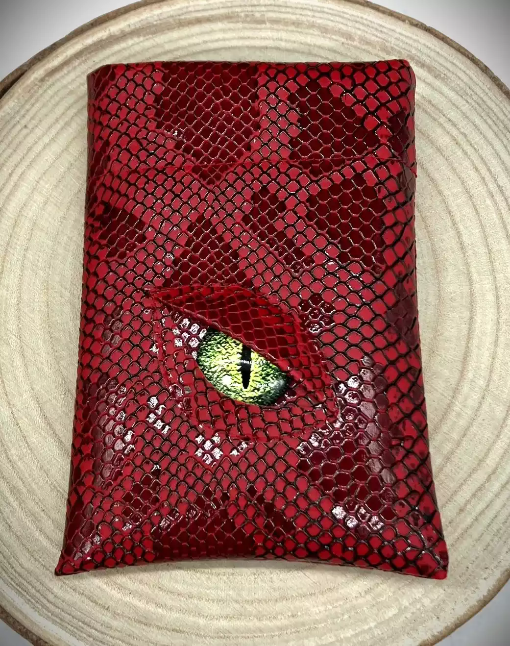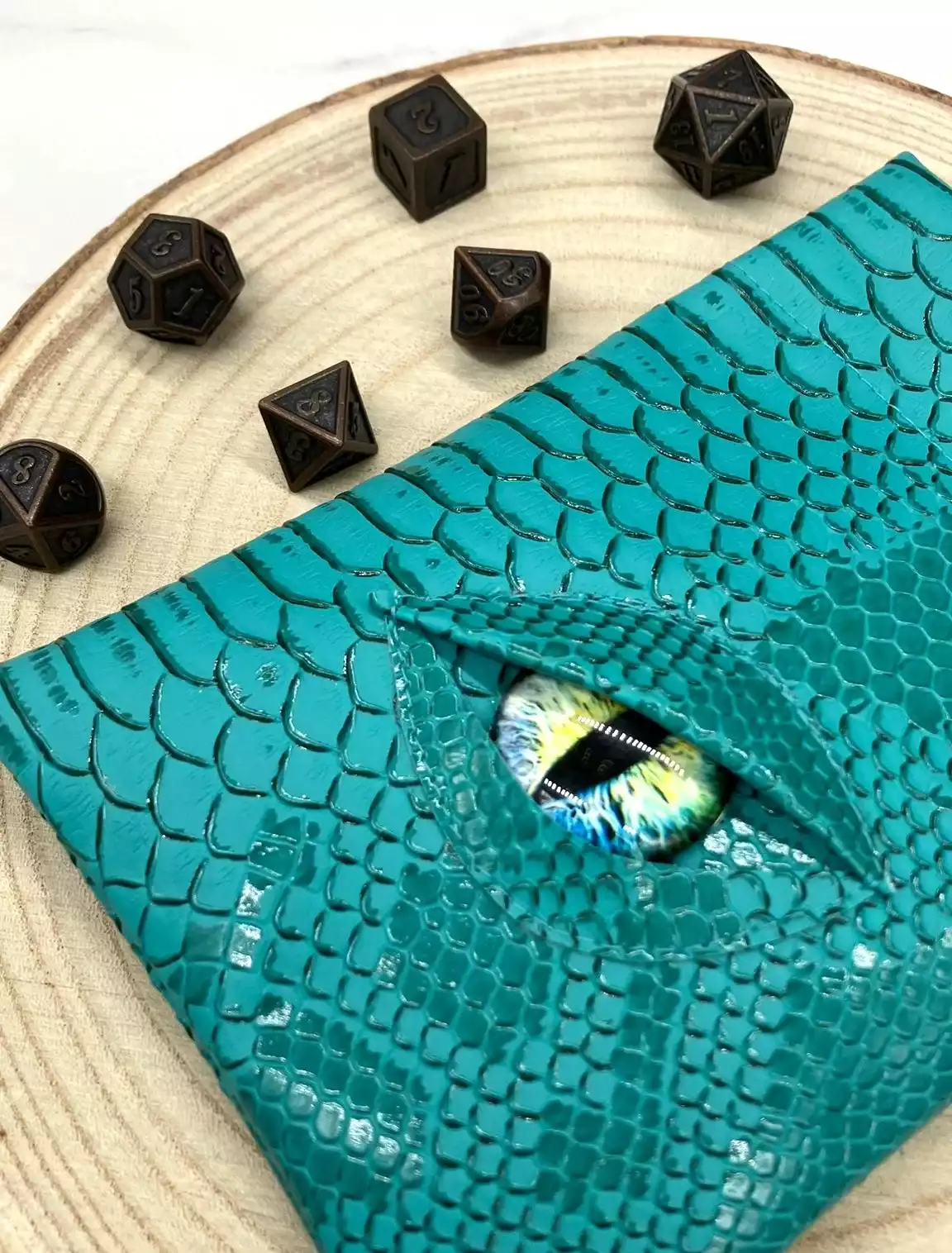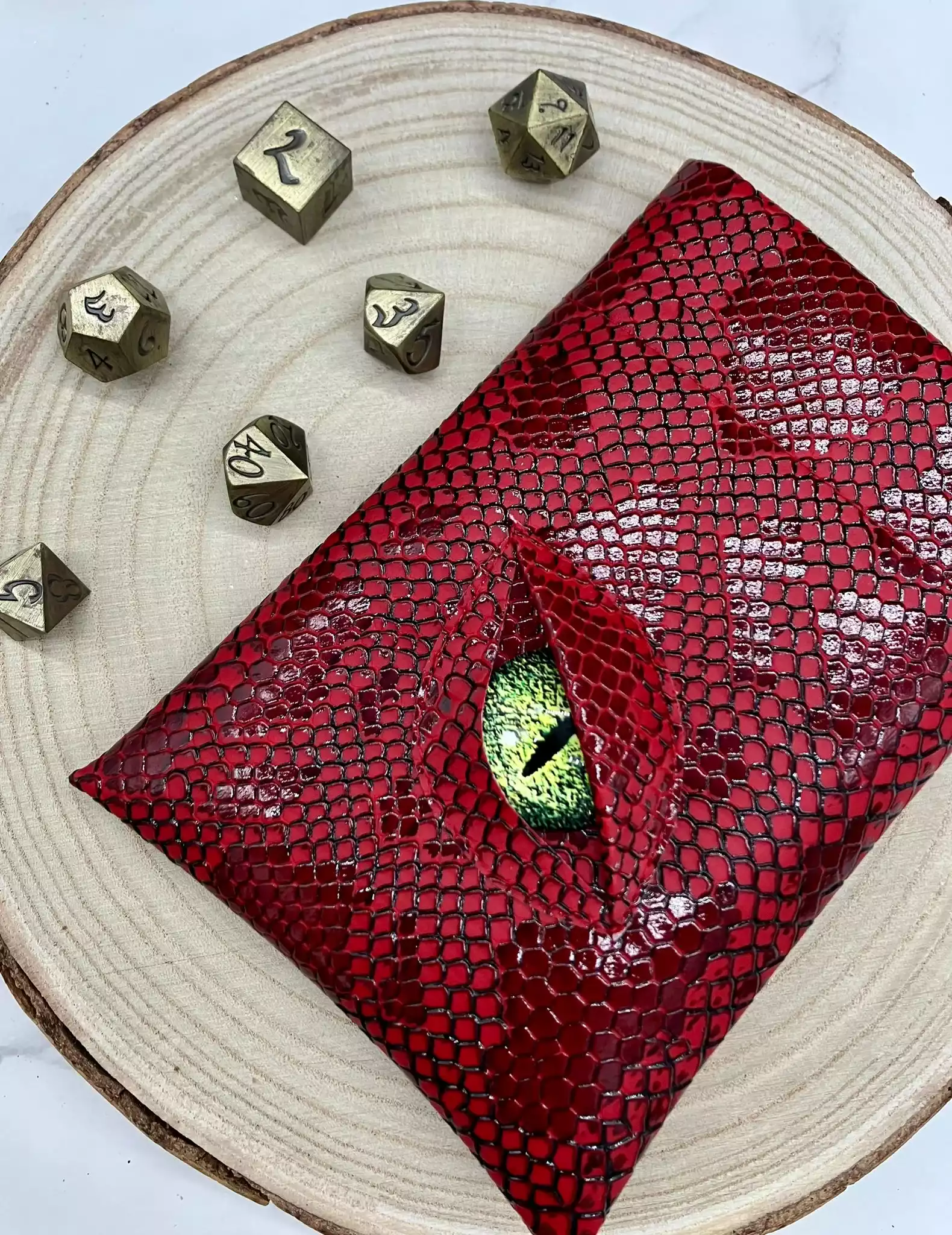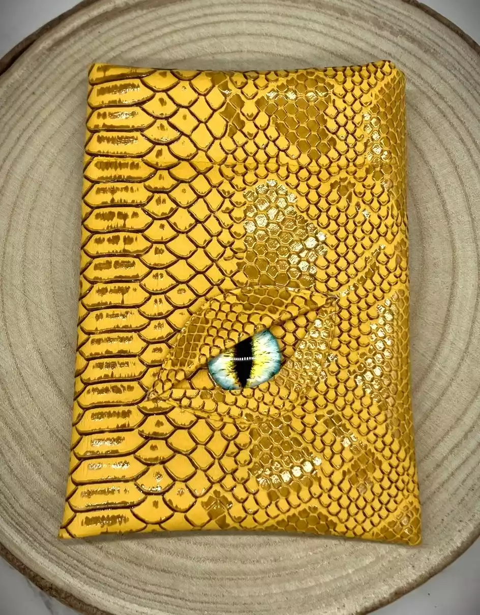 Vous êtes enfin monté de niveau à la session précédente et vous avez envie que tout le monde le sache. Ça tombe bien, votre victoire contre Cazul, le grand dragon, vous a permis de récolter sa peau écailleuse pour vous en faire des accessoires. Après quelques heures passées à la tannerie, vous en ressortez avec une magnifique pochette garantie anti-fumble critique*. de plus son œil magique vous donnera un bonus de perception*, vos ennemis n’auront qu’à bien se tenir !