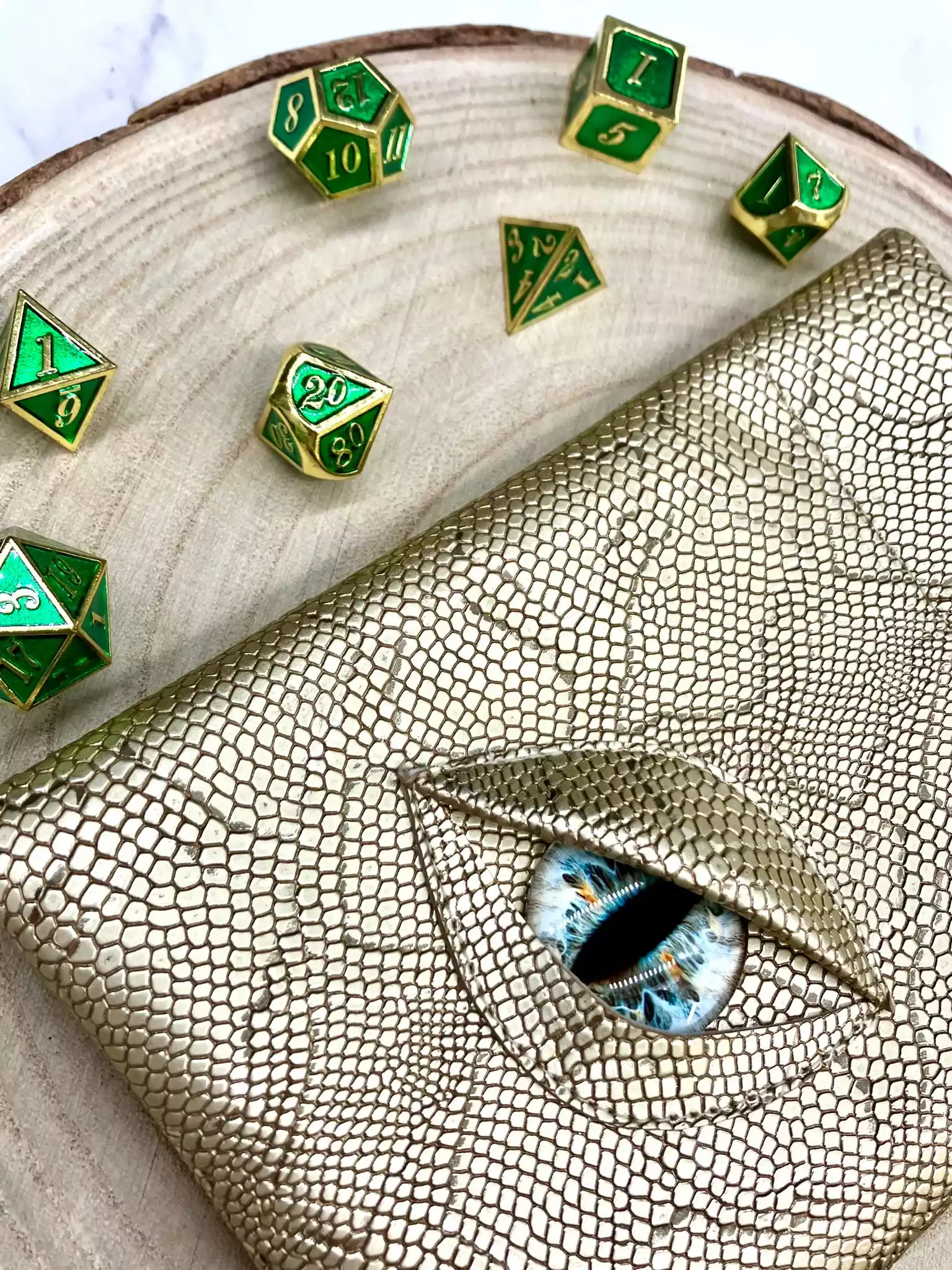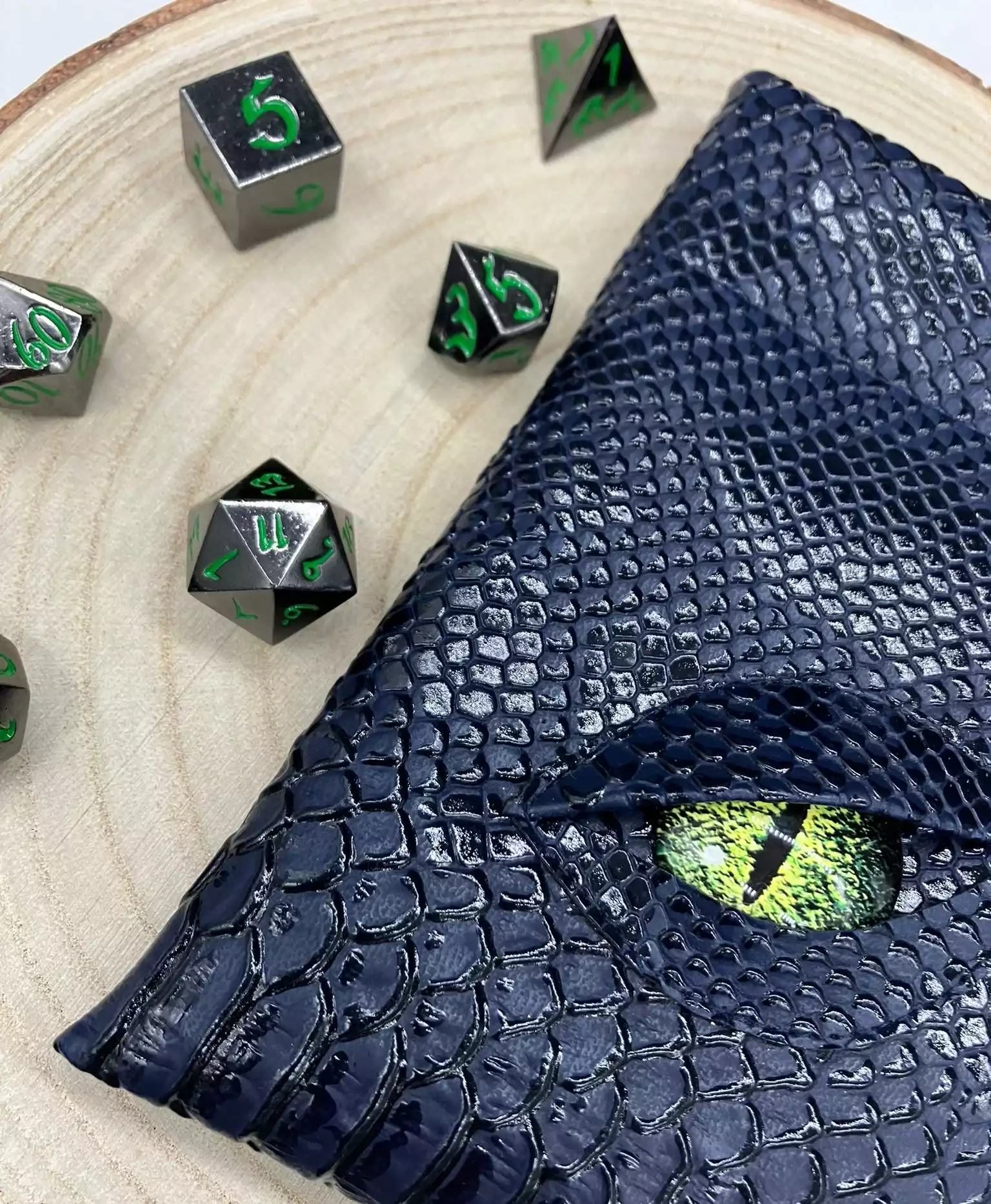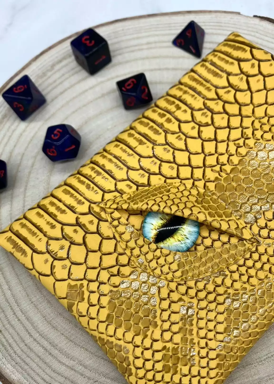 Vous êtes enfin monté de niveau à la session précédente et vous avez envie que tout le monde le sache. Ça tombe bien, votre victoire contre Cazul, le grand dragon, vous a permis de récolter sa peau écailleuse pour vous en faire des accessoires. Après quelques heures passées à la tannerie, vous en ressortez avec une magnifique pochette garantie anti-fumble critique*. de plus son œil magique vous donnera un bonus de perception*, vos ennemis n’auront qu’à bien se tenir !