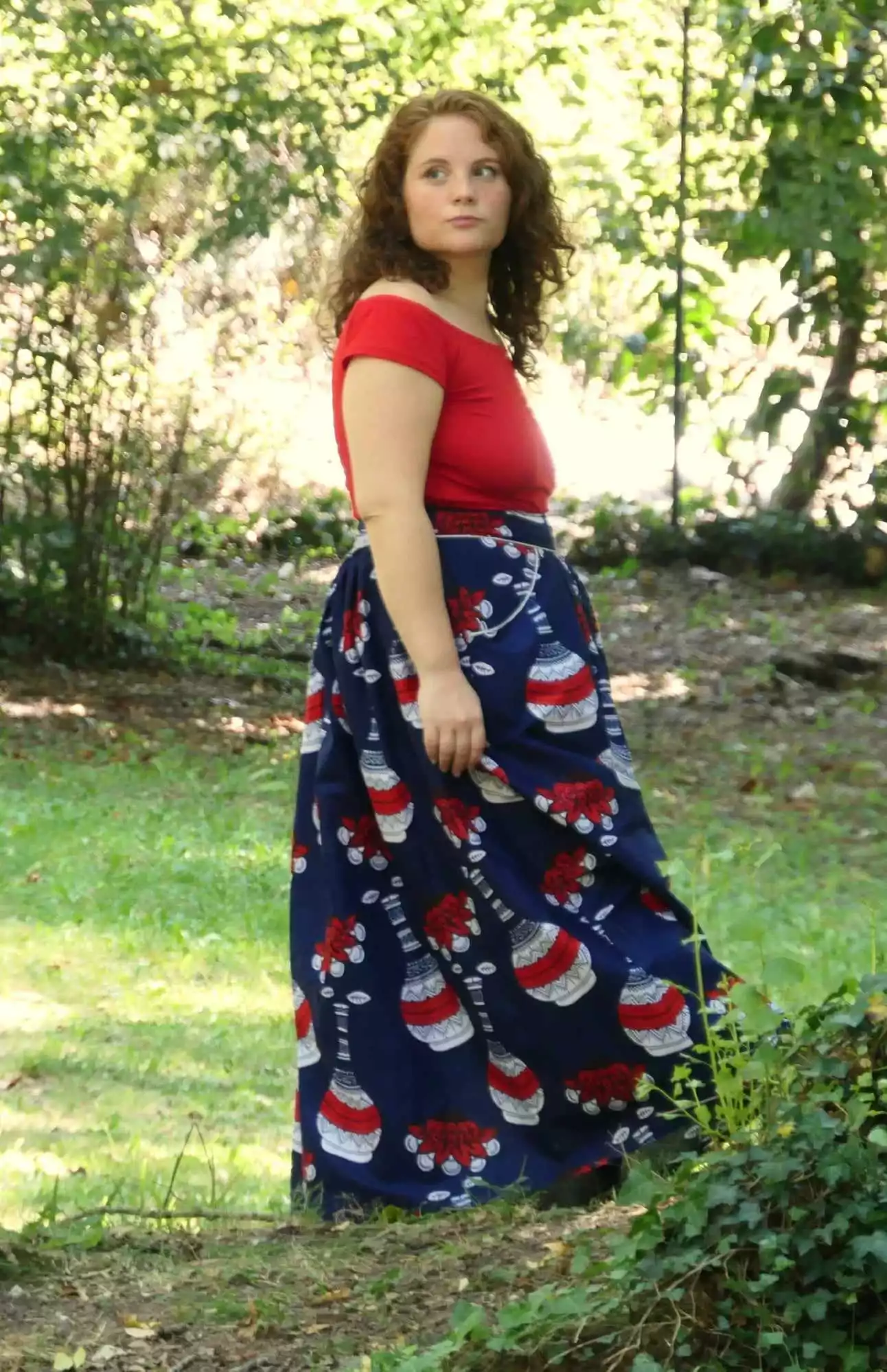 La jupe longue Potionaë faite à vos mesure vous ravira par sa légèreté et ses couleurs vives. Le petit plus ? Deux poches bordé de passepoil pour pouvoir y glisser votre téléphone ou tout autre chose